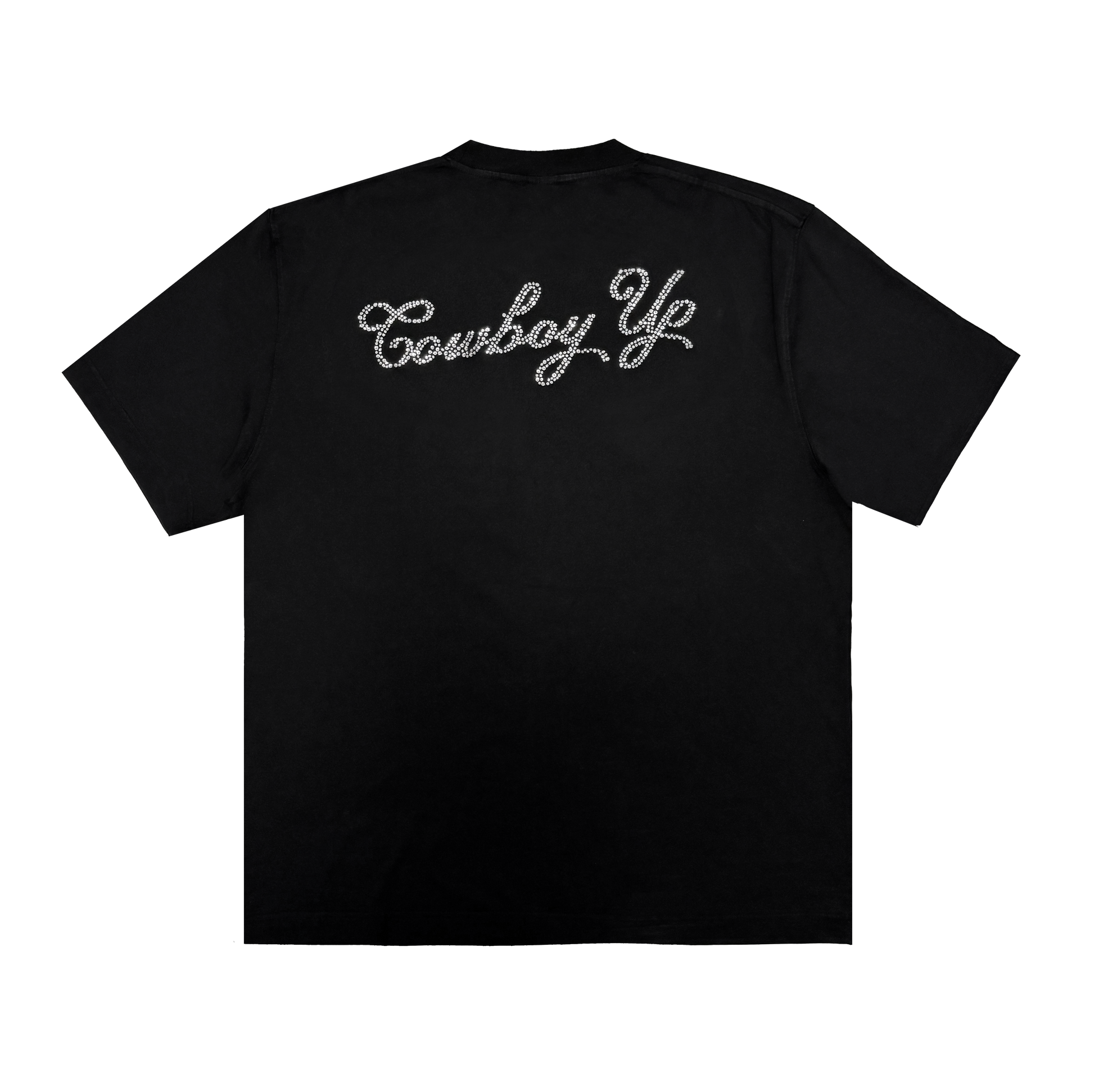 Sparkle and shine in the "Cowboy Up" diamanté tee—a fun, bold statement for any day.
